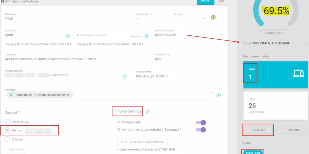 - Ao mudar o stage da sua API para Prod (Client ID Validation ou OAuth), esta já deve estar no stage Homolog correspondente, bem como publicada no ambiente Homologação Unicamp.